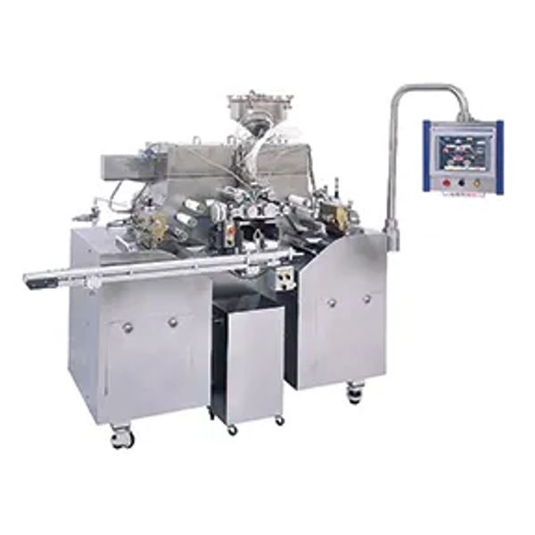 Highly-efficient softgel machine offers precision in medium-scale production. Includes a PLC with a touchscreen, providing enhanced control over processes. The electrical components and PLC are situated in separate electrical panels, allowing flexible placement in the production room or technical mezzanine through a conduit. Available for both gelatin and veggie-based films with our TES VGen closed boxes and our TES VGen metering system.